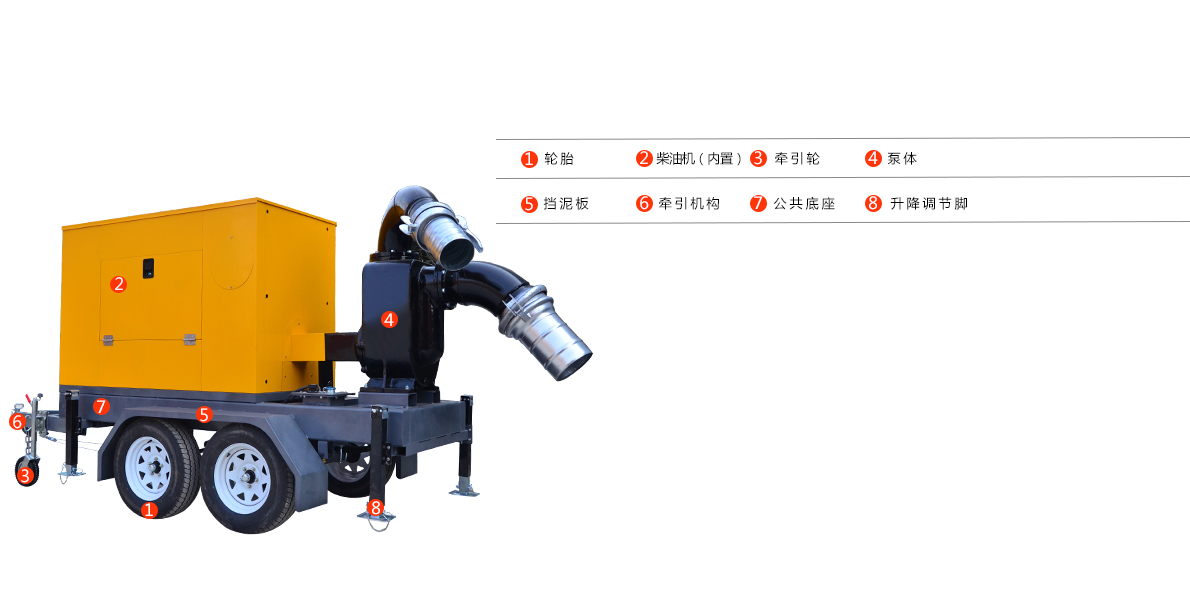 大流量混流型移動泵車集混流泵和無堵塞排污于一體,采用柴油機驅動軸向回流外混式,并通過泵體、葉輪流道的獨特設計,使用時不需要安裝底閥和灌引水。主要用于農田灌溉、農村灌溉、農業灌溉、排水泵站、雨水泵泵站、排灌排澇、防洪防汛、防洪排澇、抗旱減災等。大流量混流型移動泵車具有很好的自吸性能;而且機動性強,外置拖車裝置,可裝置與汽車尾部進行拖拽;本泵全自動操作無須人員值守,全系標配一鍵啟動。本泵車是防汛抗旱產品的較佳選擇,產品技術達到國際水平,具有廣泛的應用市場和發展前景。拖車式移動排澇泵車具有效率高、性能范圍廣、運行安全平穩、噪音低、壽命長、安裝維修方便等特點。供輸送清水或物理化學性質類似于水的其它液體,也可以通過改變泵過流部件材質、密封形式和增加冷卻系統用于輸送熱水、油類、腐蝕性或含磨粒的介質。